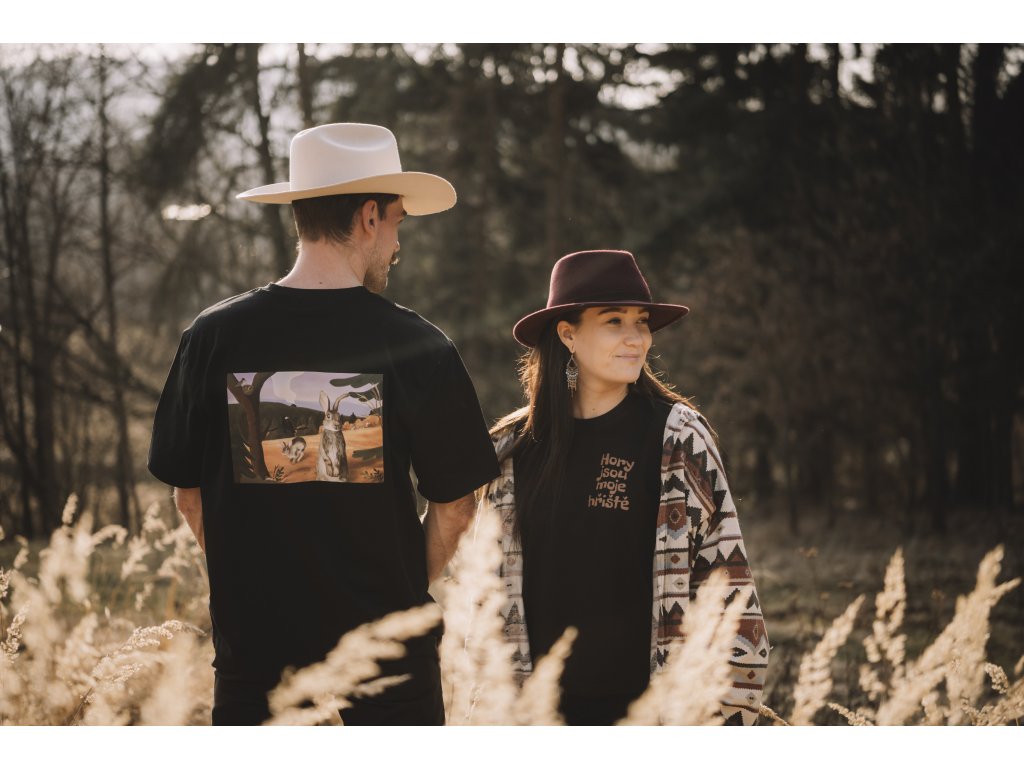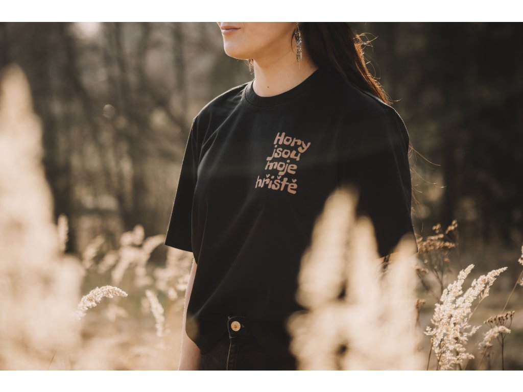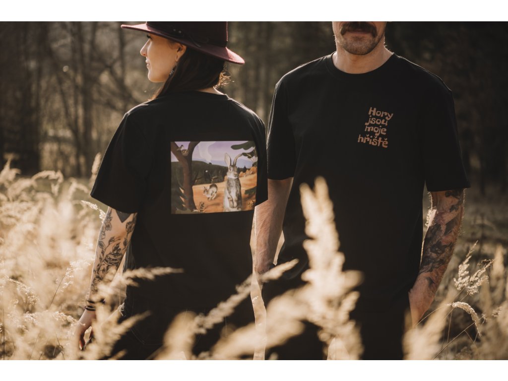Pánské tričko s ilustrací z knihy František Ze života malého boudaře z kolekce Hory jsou moje hřiště. Na přední straně je nápis Hory jsou moje hřiště a na zadní straně velká ilustrace, která potěší všechny milovníky hor.